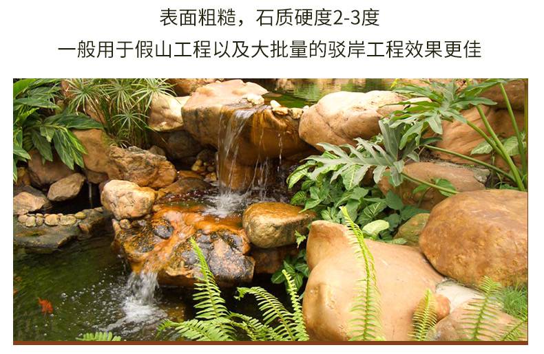 庭院黄蜡石驳岸就爱山造景石材天然黄蜡石 园林石 黄蜡石的岩石为石英岩,是一种分布广、成因多样、由二氧化硅组成的岩石。石英岩从成因上又可分为岩浆岩类石英岩和变质岩类石英岩两种类型,岩浆岩类石英岩由含二氧化硅岩浆冷凝而成,缓慢冷凝,形成了显晶质石英,冷凝,则形成隐晶质石英。变质岩类石英岩主要有因化学或生物化学作用形成的硅质岩、硅质胶结的石英砂岩和沉积作用形成的石英砂岩,其中石英砂岩在温度、压力下产生变质作用,形成新的石英岩,是形成黄蜡石的重要基础。 黄蜡石之所以能成为观赏石,除其具备以上特点外,还有湿、润、密、透、凝、腻六德。黄蜡石有以下特点。一是石质相当好,冻蜡,透剔晶莹。在乌兰浩特市归流河发现的黄蜡石无论是从视觉,手感都给人一种愉悦感。 "石不能言可人"也许这就是注解,有一种清雅之气,让人怜,让人惜。是大自然的杰作,无半点人工斧凿的痕迹,可遇而不可求,堪称石中绝品。二是形状奇特多样,像动物、像人、像网络、像花簇,真是惟妙惟肖,令人叹为观止。配上合适的架座,再摆设于厅堂或几案,满室生辉,真是人见人爱。