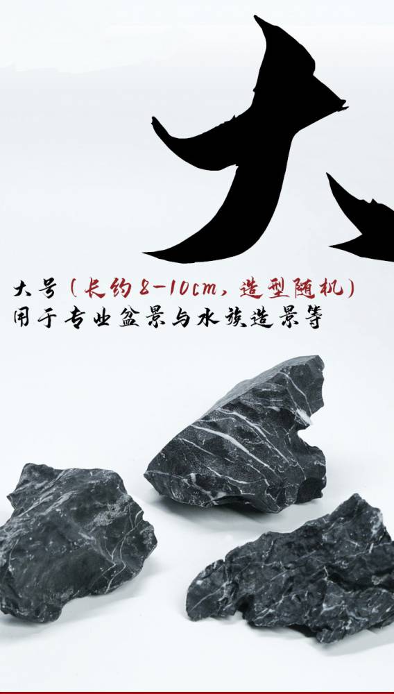 青龙石大小鱼缸装饰盆景石天然原石厂家货源 产在英德市的一种风化石。主要用于风景园艺,假山等。有淡青、灰黑、浅绿、黝黑、白色等数种,以黑者为贵。英石也是传统文房供石的主要代表品种;英石正背面明显,正面多洼孔、石眼,玲珑宛转,精巧多姿,而背面较平滑。英石质坚而脆,叩之有共鸣声,历来为收藏者所喜爱。 其种类分为阳石和阴石两大类。阳石露在地面,长期风化,质地坚硬,色泽青苍,形体瘦削,表面多折皱,扣之声脆,分为直纹石、横纹石、大花石、小花石、叠石和雨点石,是瘦和皱的典型,适宜制作假山和盆景;阴石深埋地下,风化不足,质地松润,有的间有白纹,形体漏透,造型雄奇,扣之声微,是漏和透的典型,适宜成景。 属沉积岩中的石灰岩,主产于广东北江中游的英德山间。该地岩溶地貌发育较好,山石较易溶蚀风化,形成嶙峋褶皱之状;兼之日照充分、雨水充沛,暴热暴冷,山石易于崩落山谷中,经酸性土壤腐蚀后,呈现嵌空玲珑之态,英石本色为白色,因为风化及含杂质(如金属矿物铜、铁等)而出现多色泽,有黑色、青灰、灰黑、浅绿等色,常见黑色、青灰色,以黝黑如漆为佳,石块常间杂白色方解石条纹。石质坚而脆,佳者扣之有金属共鸣声。石质大多枯涩,以略带清润者为贵。