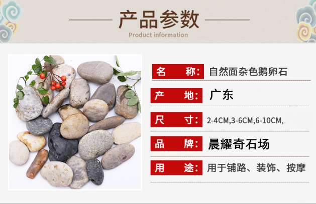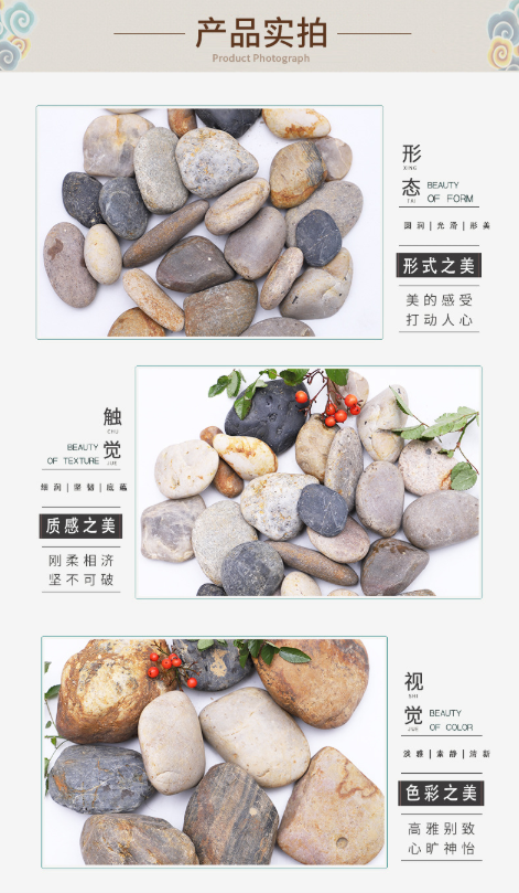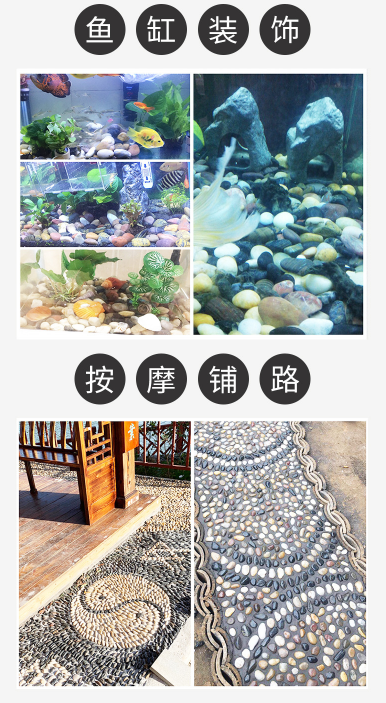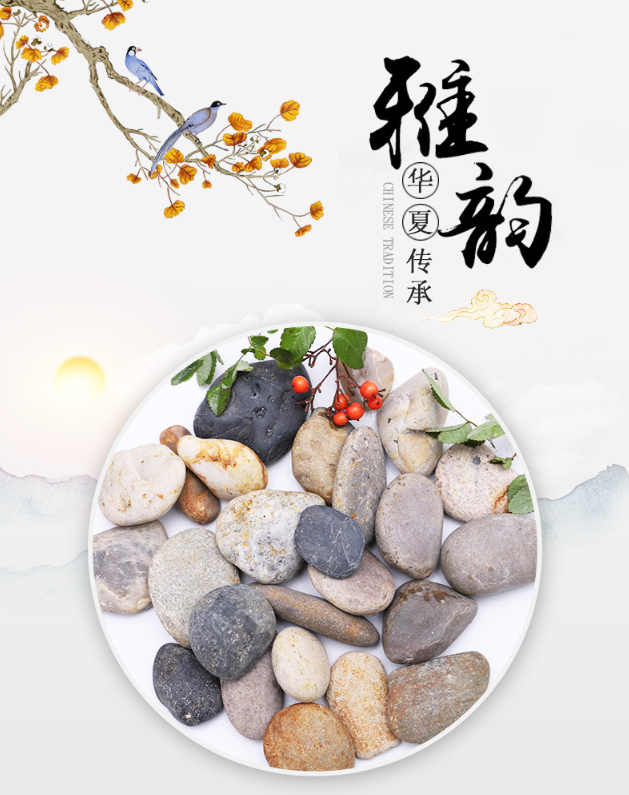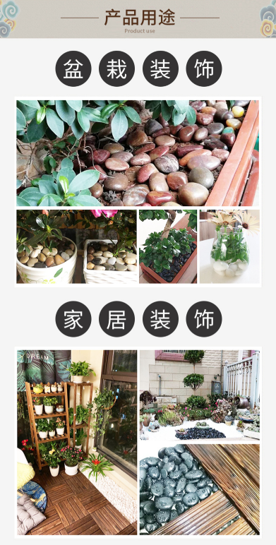 鹅卵石被广应用于公共建筑、别墅、庭院建筑、铺设路面、公园假山、盆景填充材料、园林艺术和其它上层建筑。它既弘扬东方古老的文化,又体现西方古典、优雅,返璞归真的艺术风格。