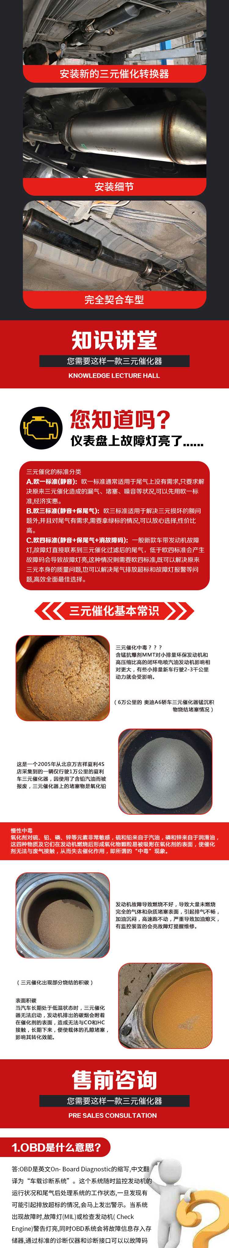 山东宁津剑飞三元催化器有限公司,成立至今已有20年,占地5000平方米,我公司是一家专业生产 销售 为一体的服务公司,公司主要供应4S店 汽修厂 汽配店 出租车等客户群体,还可以根据客户的需求加工定做{必须来样品},根据不同的城市排放标准,为客户推荐适合爱车 当地标准原装位置三元催化器,精益求精、细致造就差别!公司生产的三元催化器选用409耐热不锈钢配以优质陶瓷载体、金属载体组成,产品均为实物拍摄,且均是厂家发货!所以请亲爱的朋友们放心购买。